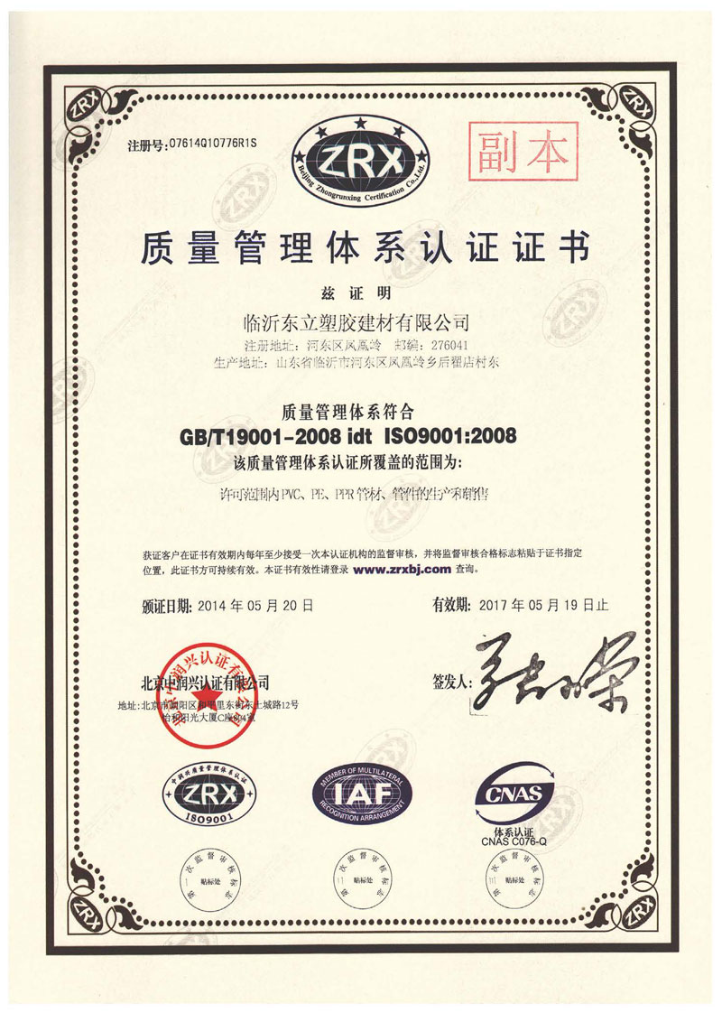 質(zhì)量管理體系認(rèn)證證書