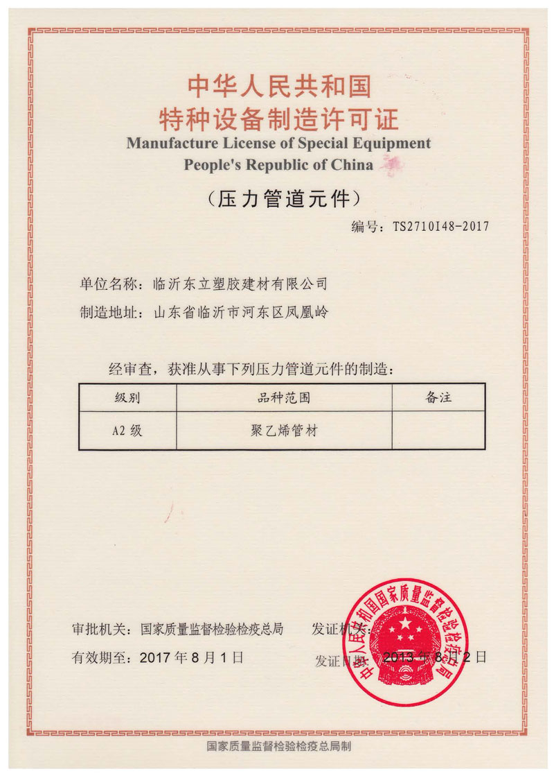 特種設(shè)備制造許可證