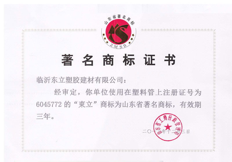 著名商標(biāo)證書